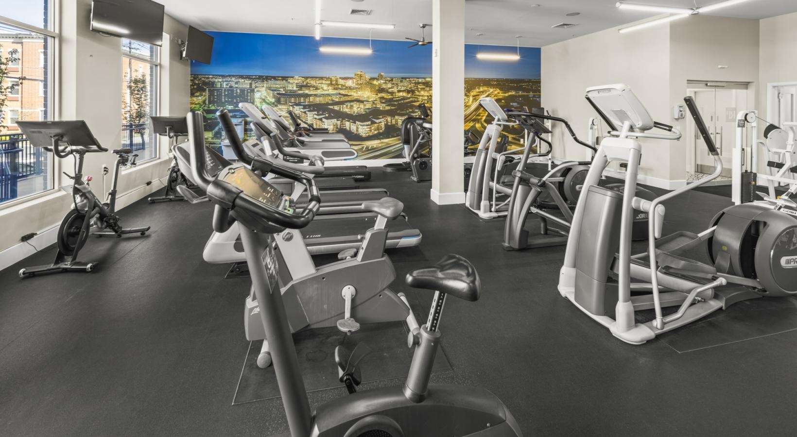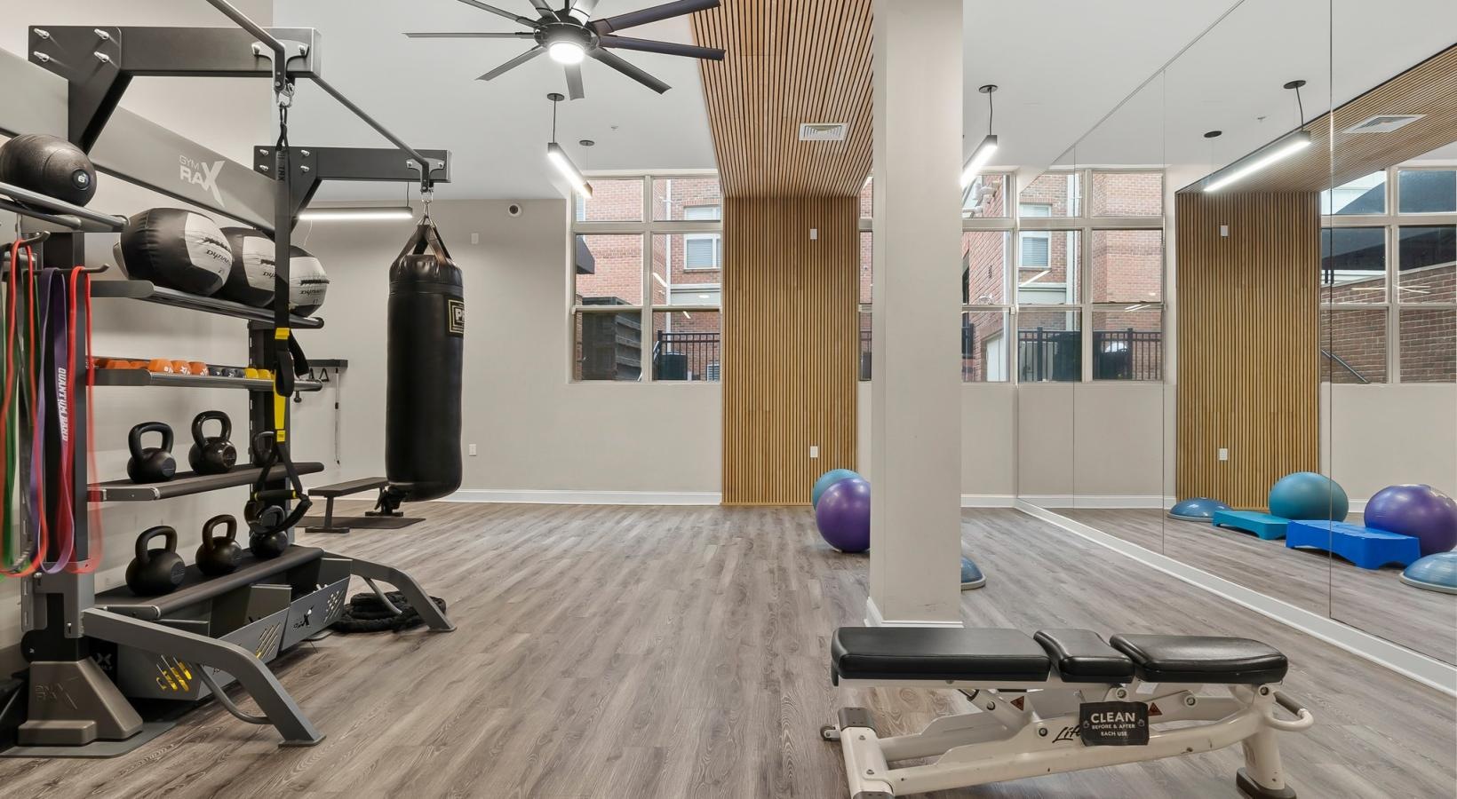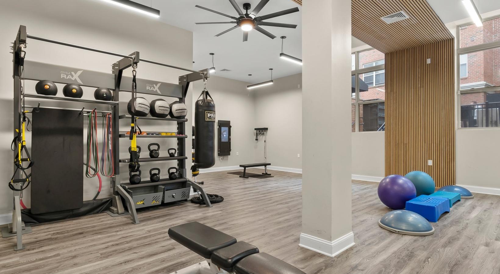 • a gym with exercise equipment