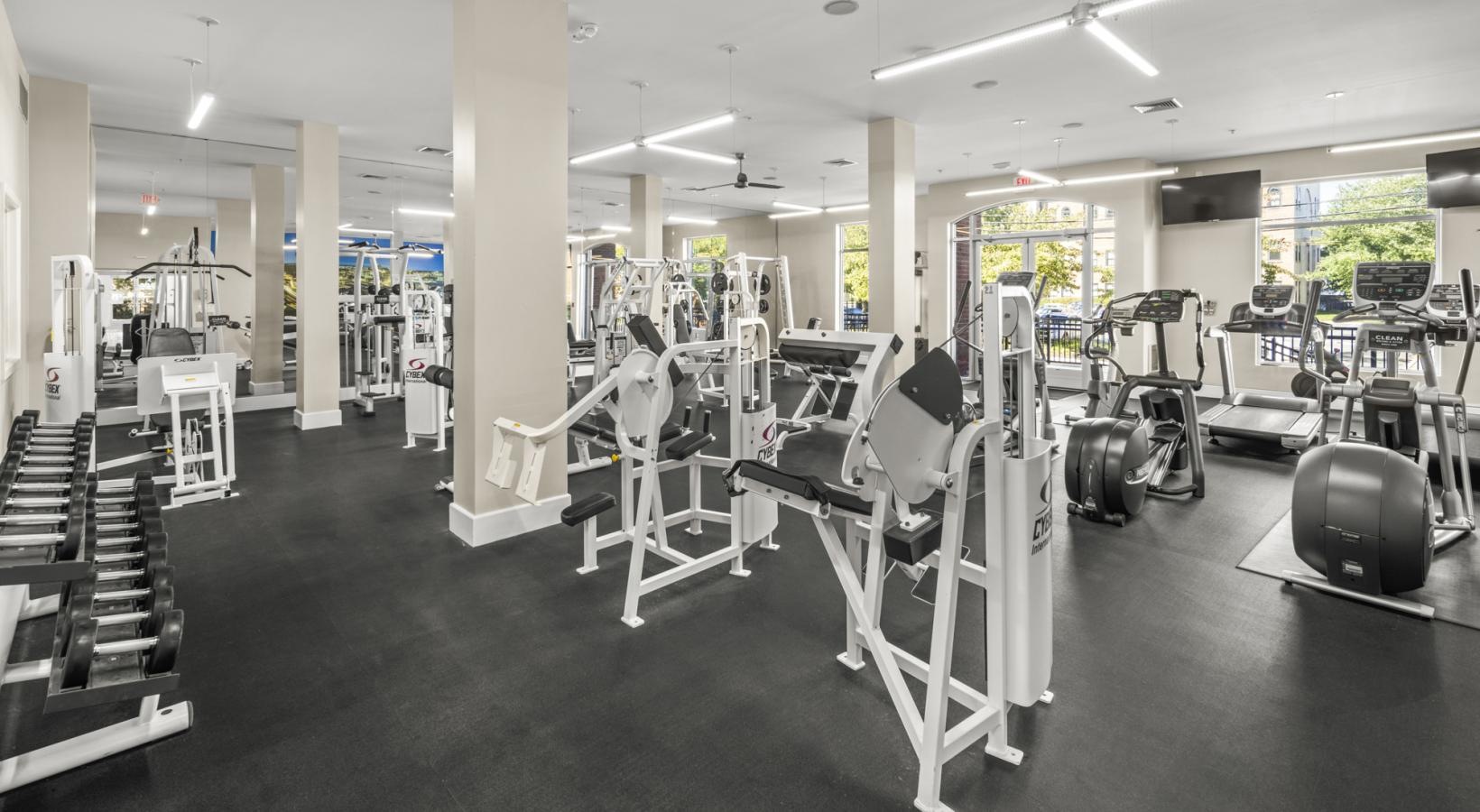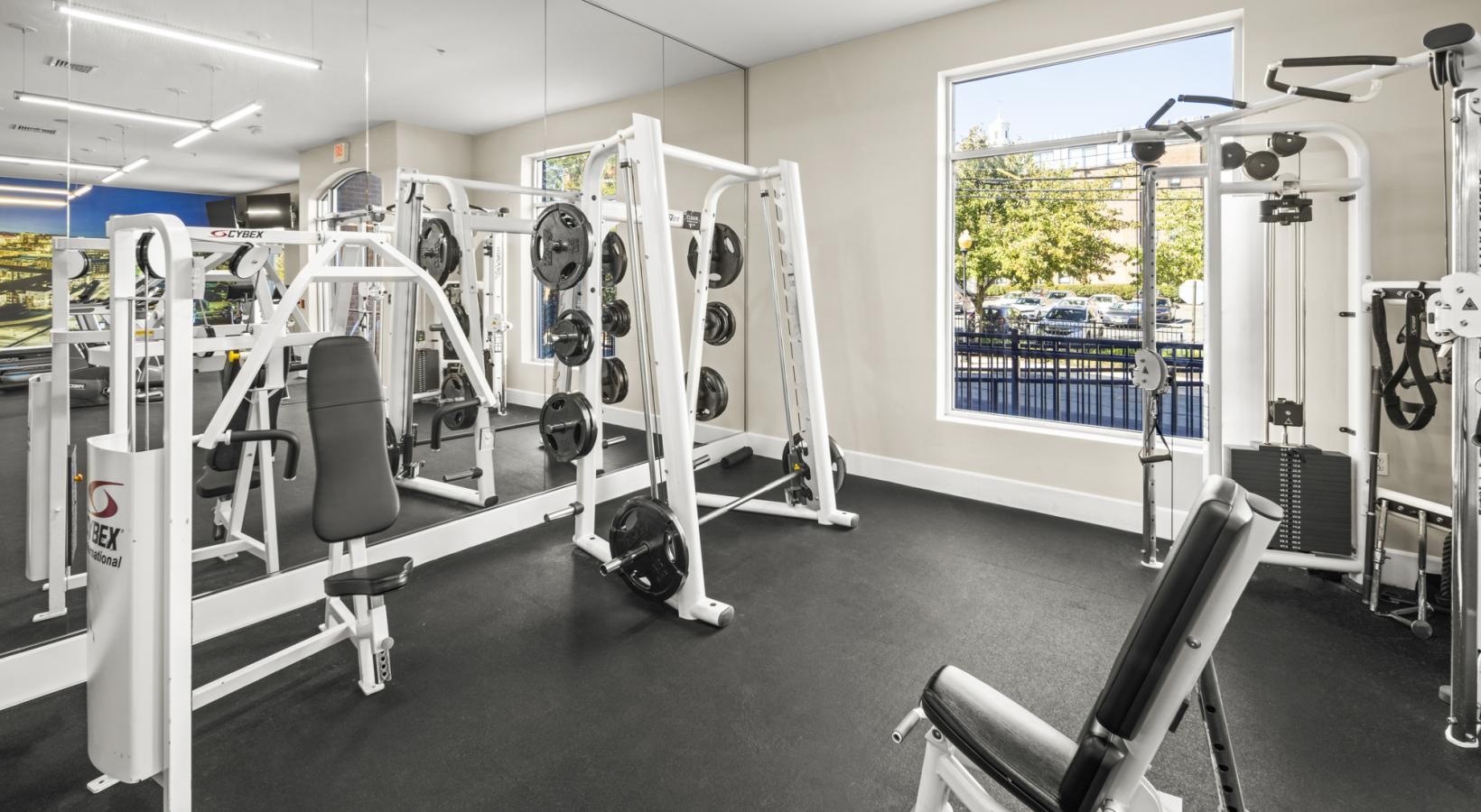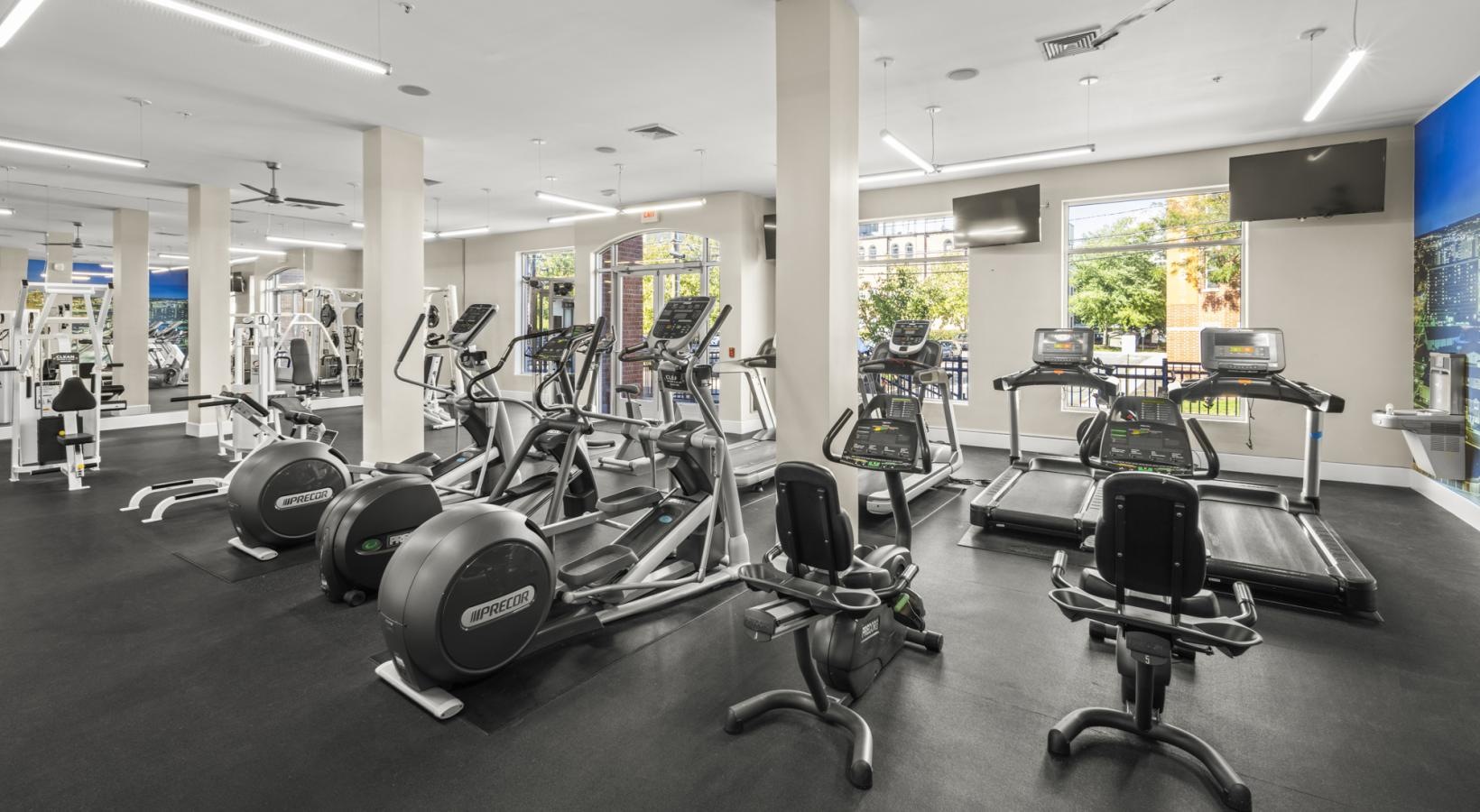 • a gym with exercise equipment