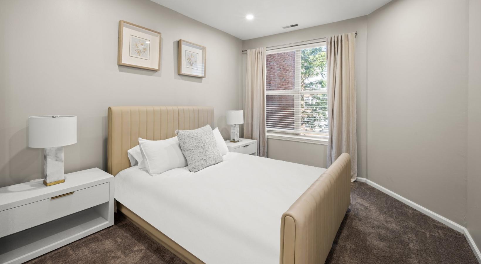• a bedroom with a bed lamp and window