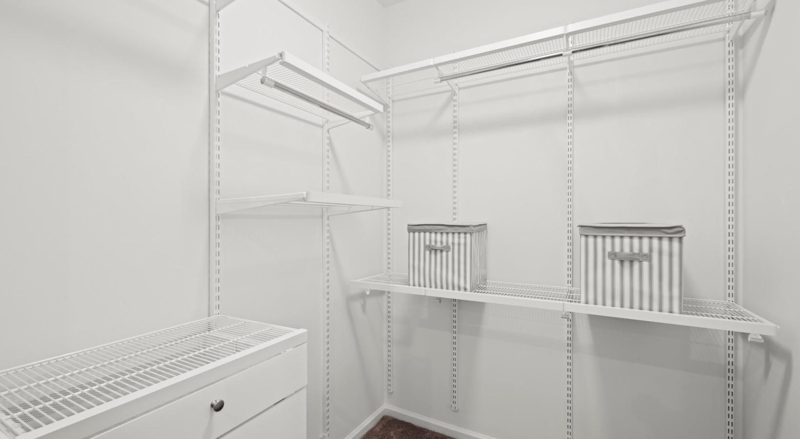 • a white shelving unit and a white cabinet