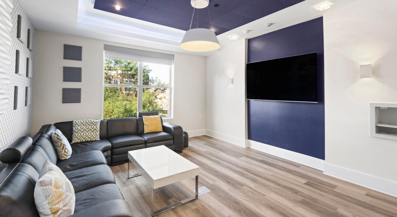 • a room with a tv and windows