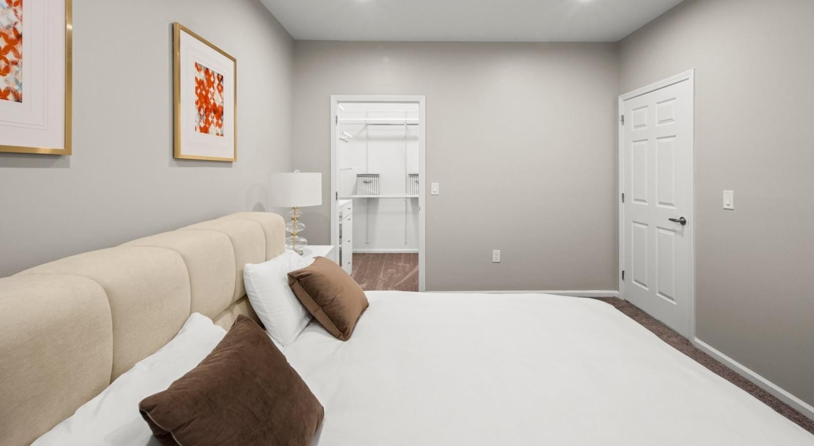 • a bedroom with a bed and a lamp