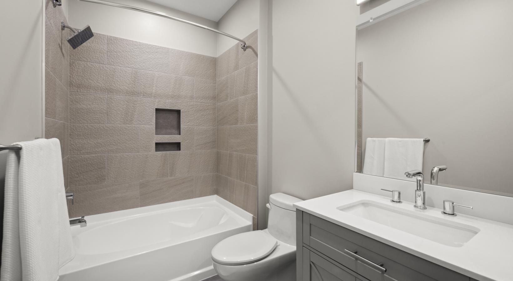 • a bathroom with a tub sink and toilet