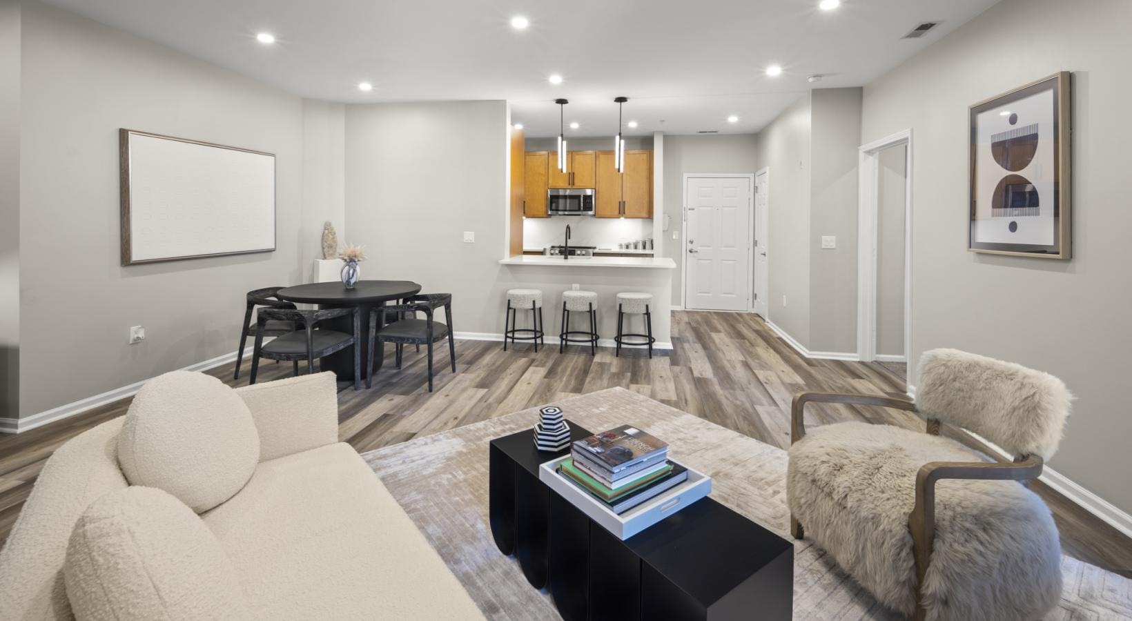 • a living room with a  couch table and chairs